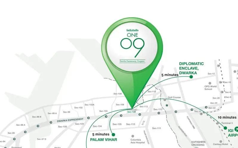 Sector 109 Gurgaon benefits from its position near the Dwarka Expressway corridor, a major growth route linking Gurgaon with Delhi and other important infrastructure zones. Indiabulls One09 Phase I gains additional relevance from this connectivity because better road access improves visitor convenience and strengthens the long-term commercial value of the address. The location also supports movement across important parts of Gurgaon, making it practical for both customers and businesses.