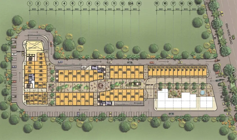The project is located on Golf Course Extension Road, an important commercial spine that connects premium residential sectors with key urban destinations across Gurgaon. Sector 66 has developed into a strong mixed-use micro-market supported by residential catchment, infrastructure growth and commercial activity. This location advantage helps businesses benefit from regular customer movement and easier access from surrounding parts of the city.