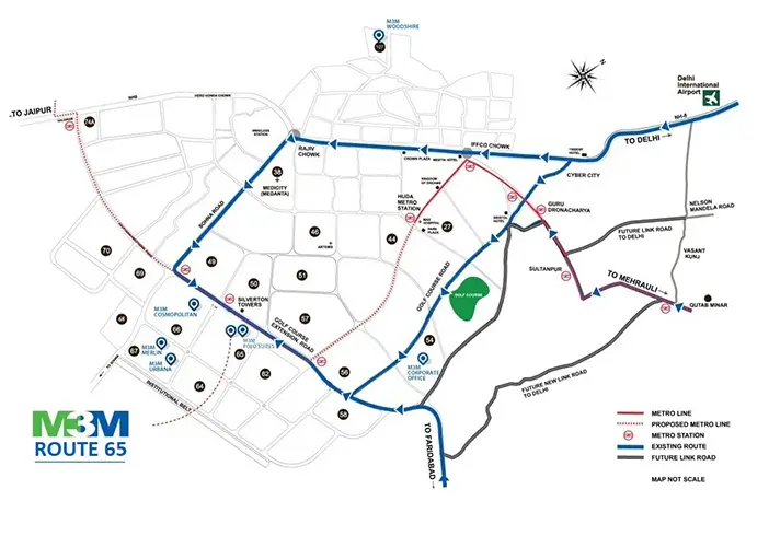 Sector 65 Gurgaon is one of the more prominent mixed-use corridors near Golf Course Extension Road, supported by premium residential catchments and a growing commercial ecosystem. M3M Route65 benefits from this location because it remains accessible from Golf Course Road, Sohna Road and other key parts of Gurgaon. This improves convenience for customers while also strengthening the project's long-term value as a retail-led destination.
