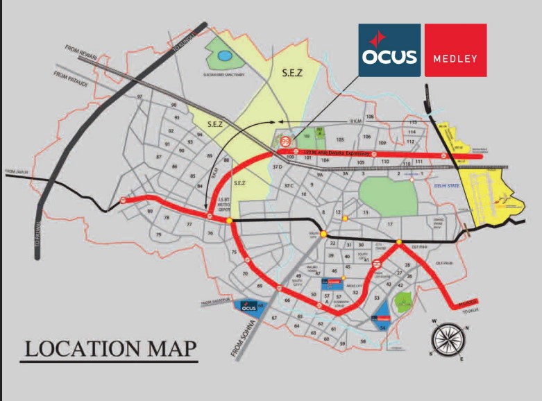 Sector 99 Gurgaon benefits from its proximity to Dwarka Expressway, one of the region's key infrastructure corridors connecting Gurgaon with Delhi and other important urban zones. OCUS Medley draws significant value from this location because better road connectivity improves visitor access and strengthens the long-term commercial relevance of the address. The project also remains well placed for movement toward NH-48 and other important parts of Gurgaon.
