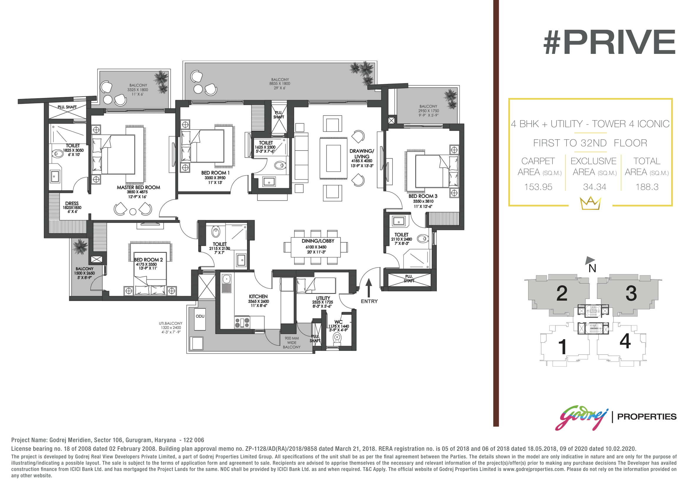4 BHK flat for sale in Godrej Meridien Sector 106 Gurgaon is located in Dwarka Expressway. It is a 4 BHK with 2,026 SQFT listing. Current status is Ready to move.