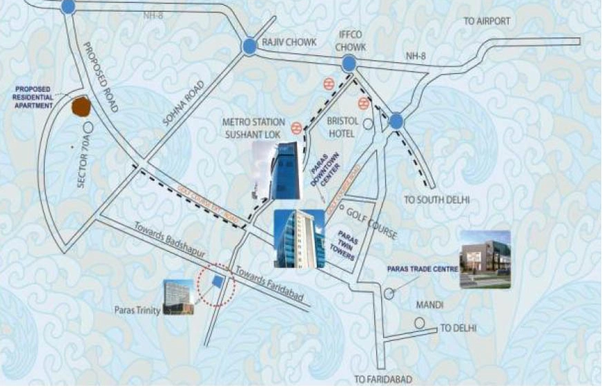 Paras Irene Sector 70A enjoys excellent connectivity while maintaining a quiet residential feel. The project is located close to Golf Course Extension Road, providing smooth access to major parts of Gurgaon. It is well connected to NH-48, Sohna Road, and other important corridors. Metro connectivity is also available within a short distance, making daily travel easier.